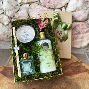 Kit Bem Estar Boas Energias Presente Personalizado Vela Aromática Sal Grosso Difusor de Ambiente Alecrim