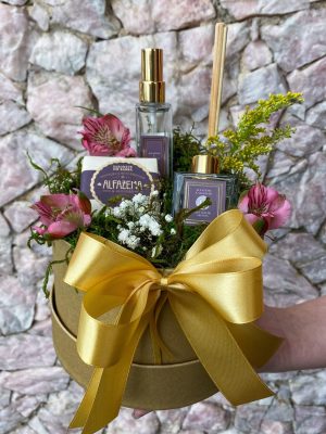 Encante-se com nossa cesta rústica, adornada com tecido, que envolve cuidadosamente cada item selecionado. Delicie-se com a beleza de um antúrio, acompanhado por um cupcake decorado que adoça a alma. Saboreie o conforto de uma porção de pão de queijo e a delícia de um alfajor. E para completar este momento especial, desfrute de um chá de infusão que aquece o coração.
