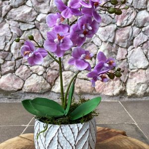 Arranjo de Orquídeas Permanentes Flores Artificiais de Alta Qualidade Cachepot em Cimento Vaso Moderno Mart