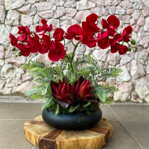 Arranjo Orquídeas Permanentes Vermelhas Flores Artificiais de Alta Qualidade Vaso Fibra de Vidro