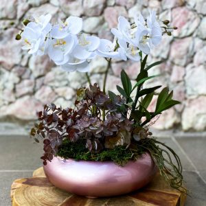 Arranjo Orquídeas Permanentes Brancas Flores Artificiais de Alta Qualidade Vaso Fibra de Vidro