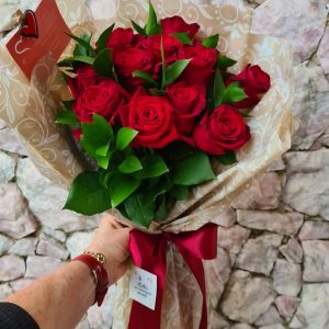 Buquê Moderno com 12 Rosas Vermelhas