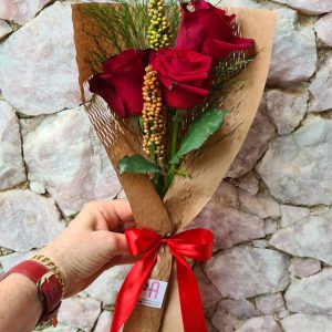 Mini Buquê com 3 Rosas Vermelhas Flor Natural
