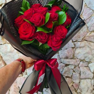 Buquê Moderno com 12 Rosas Vermelhas Flor Natural
