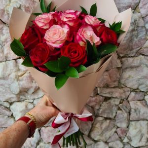 Buquê Moderno Estruturado com 15 Rosas Flor Natural