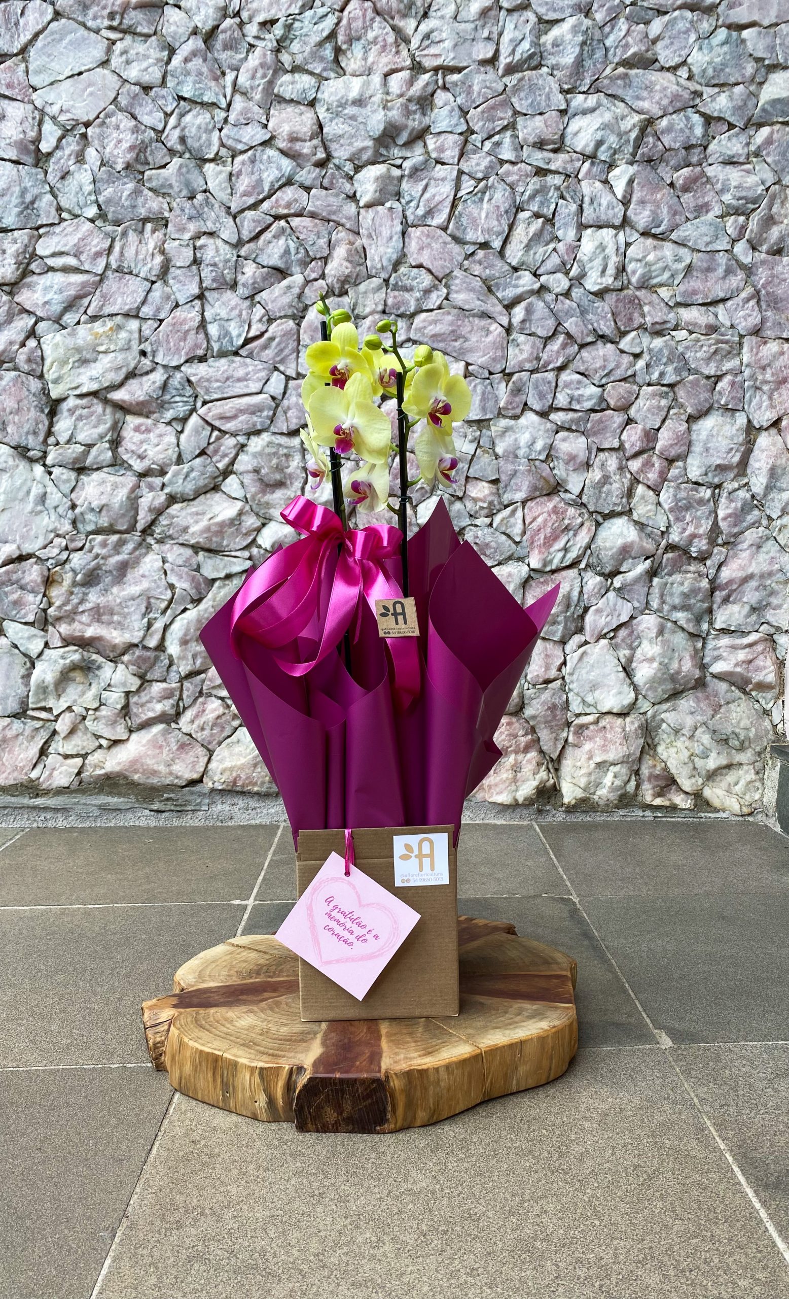 Orquídea Phalaenopsis Flor Natural pote 12 haste reta. Verificar disponibilidade de cores.